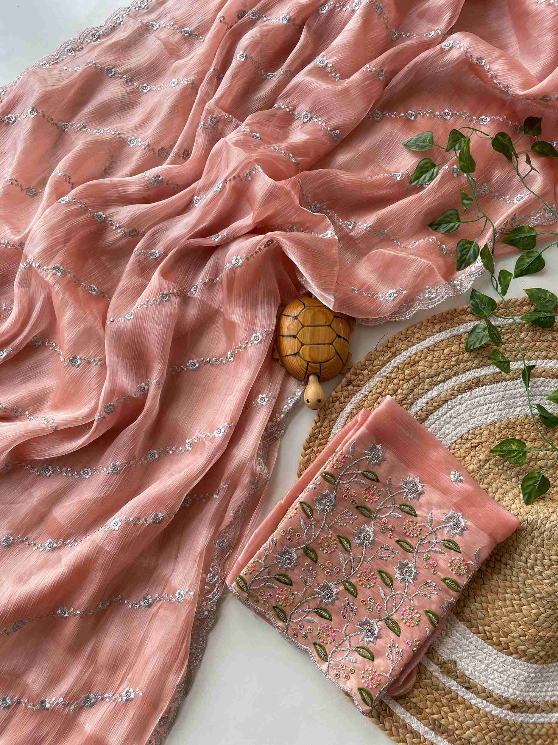Pure Burberry Jimmy choo with beautiful Emrodiery and silver work all over saree and Designer blouse with classy Cutwork Border….